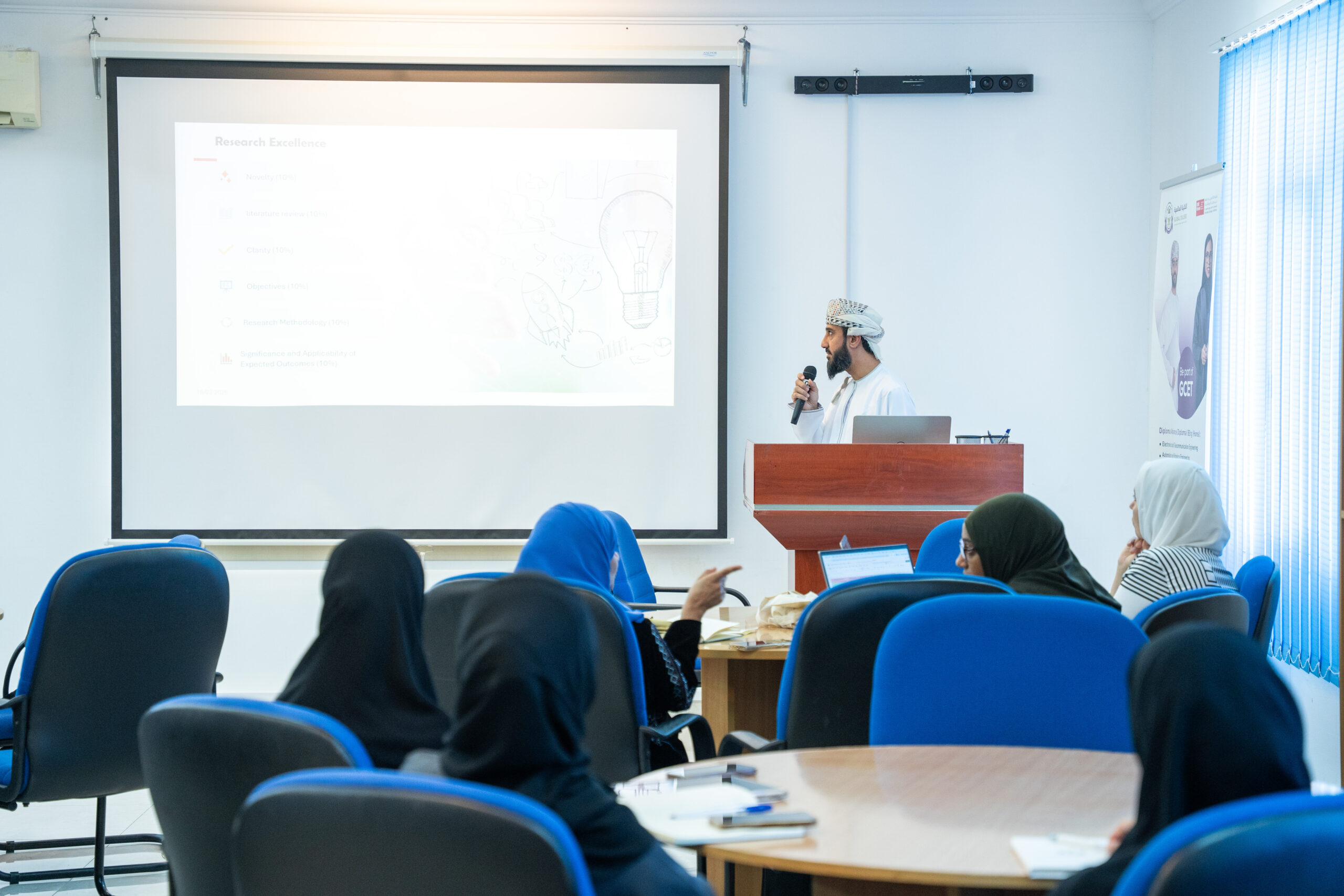 The Research and Innovation Office (RIO) at the Global College of Engineering and Technology (GCET) organized a workshop on the Block Funding Program (BFP), delivered by Mr. Abdullah Alsulaimi from the Research and Innovation Authority (RIA).